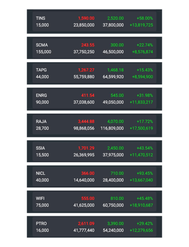 Ed Seykota, Marty Bergin, Richard Donchian, Richard Dennis, Salem Abraham, Nicholas Darvas, William O’Neil, dan banyak trend follower lainnya berhasil meraih return luar biasa dengan strategi yang sama.